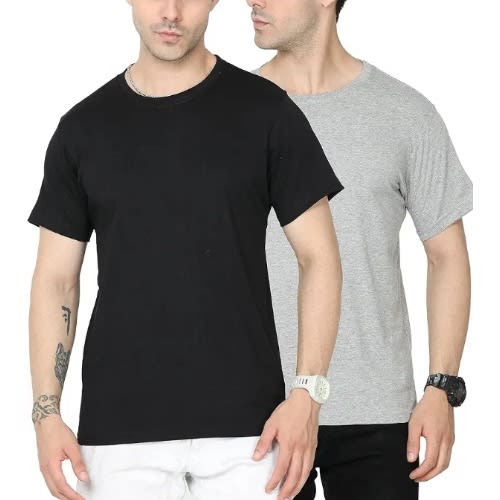 Buy Pack Of Two Cotton Roundneck T-shirt For Men - Black And Grey in Nigeria
