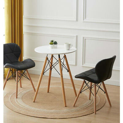Dinning Leather Chair With Wooden Leg- Set Of 4- White
