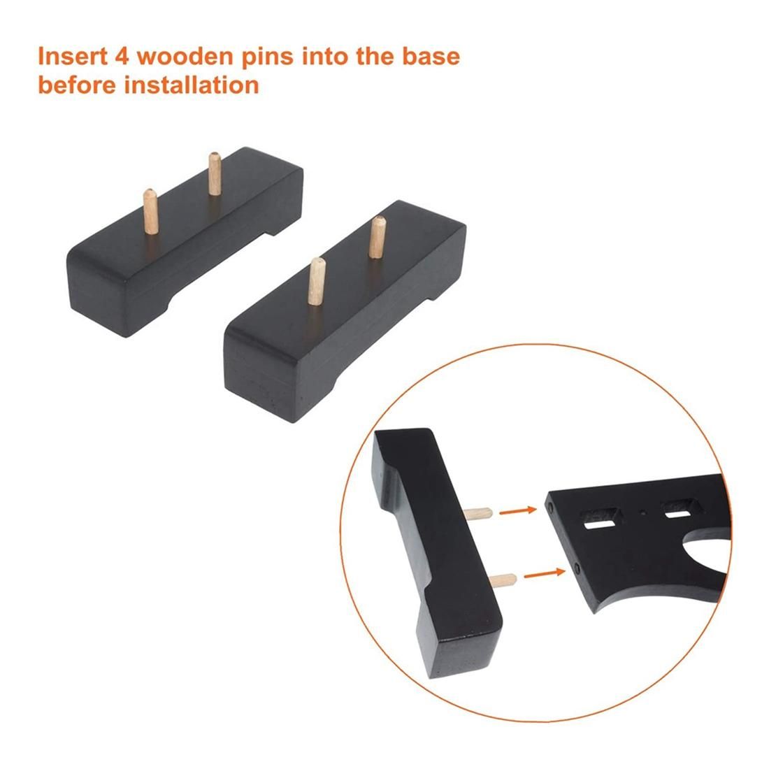 Insert the 4 wooden dowels into the base, then insert the side pieces into the base.