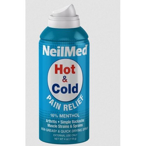 NeilMed Hot and Cold Pain Relief Spray 4 oz Temporarily alleviates minor aches and pains of muscles and joints associated with arthritis, simple backache, strains, bruises, or sprains. This no-mess dry Spray for pain relief works by desensitizing aggravated nerves to give you fast-acting, long-lasting pain relief. It's cool first to dull the pain, then hot to relax it away. Helps temporarily relieve pain associated with back pain, muscle pain, foot pain, knee pain and arthritis pain. Best of all, the continuous spray bottle works at any angle for fast, easy pain relief that keeps hands clean during application. Pain alleviation therapy for arthritis, backache, muscle strains & sprains Non-greasy Quick drying Sore muscle Medicated Spray