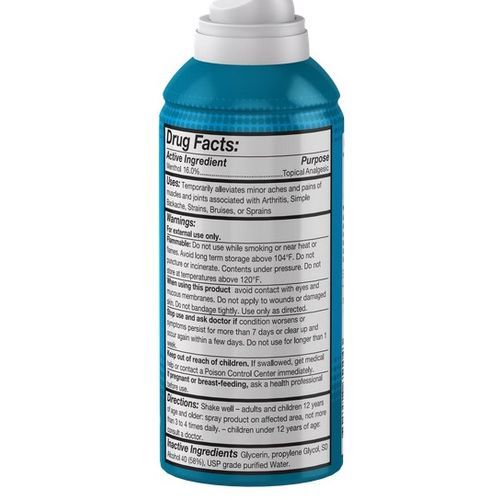Temporarily alleviates minor aches and pains of muscles and joints associated with arthritis, simple backache, strains, bruises, or sprains. This no-mess dry Spray for pain relief works by desensitizing aggravated nerves to give you fast-acting, long-lasting pain relief. It's cool first to dull the pain, then hot to relax it away. Helps temporarily relieve pain associated with back pain, muscle pain, foot pain, knee pain and arthritis pain. Best of all, the continuous spray bottle works at any angle for fast, easy pain relief that keeps hands clean during application.