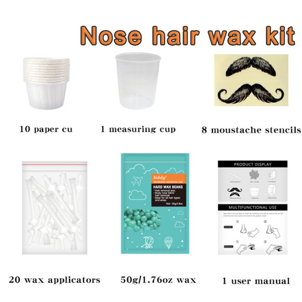 Description:Product Name: Nose Hair Removal KitSuitable for skin: mixed skinHair removal parts: bikini parts, face, legs, arms, axillaShelf life: 18 monthsRaw materials: resin Applicable crowd: universalNet content: 50gIngredients: ResinProduct Series: Hair removalName: 5Pcs Nose Kit?Packing size: about 10x10x10 (cm)Suitable for the crowd: unihow to use:Step 1: Melt the beans (methods A and B) Put the beans in a paper cup, add 60ml of hot water to the vector cup, then place the paper cup on the measuring cup until the beans are completely melted (usually it takes 2-3 minute).Step 2: Dip the ing stick in the melted .Step 3: Put the into the nostril Insert the stick into the nostril, turn the stick gently, and then push the alar of the nose to make the and the nose hair in close contact. Then, don't let the ing stick move. Leave the stick in the nostril for at least 90 seconds, but no more than 2 minutes.Step 4: Pull out the stick. Hold the nose tightly with one hand, and quickly pull the stick down with the other hand.feature:1. Disposable electrical appliances, safe and hygienic, discard after use, can 2. Removing hair from the root can slow down the growth of nose hair, and the hair removal effect is long-lasting.3.【PROFESSIONAL NOSE HAIR 】 Suitable for any skin natural ingredients beans, hair removal kit includes specially designed safety applicator, use OAKEER nose hair removal beans to enjoy safe and painless hair removal, also can be used for facial hair removal, ear hair removal, I believe you will get the highest satisfaction from using OAKEER nose nose hair removal kit.4.【USER-FRIENDLY AND SAFE】Our Nose Hair Removal ing Kit included specially designed safe applicator allows easy insertion into the nose, with natural beads for hair removal, to target only visible long nose hairs around the edge of the nostrils, whilst not touching the cilia, leaving the ant hair deep inside the nose undisturbed. It is also an eyebrow .5.【 FAST and PAINLESS 】Our nose hair removal ing kit is preferred,unlike shaving,the hair stays away much longer. Nose ing kit removes hair from the follicle, Pulls nose hairs from the root, leaving results that can last up to 4 weeks, 360° degree thoroughly cleaned .Packing list:100ml Measuring Cup x 1Nose Hair Beads x 100gBeard patch x 8oil-proof Paper Cups x 10Nose hair stick x 20Name: StickPacking specification: 50 piecesProduct material: PP plastic