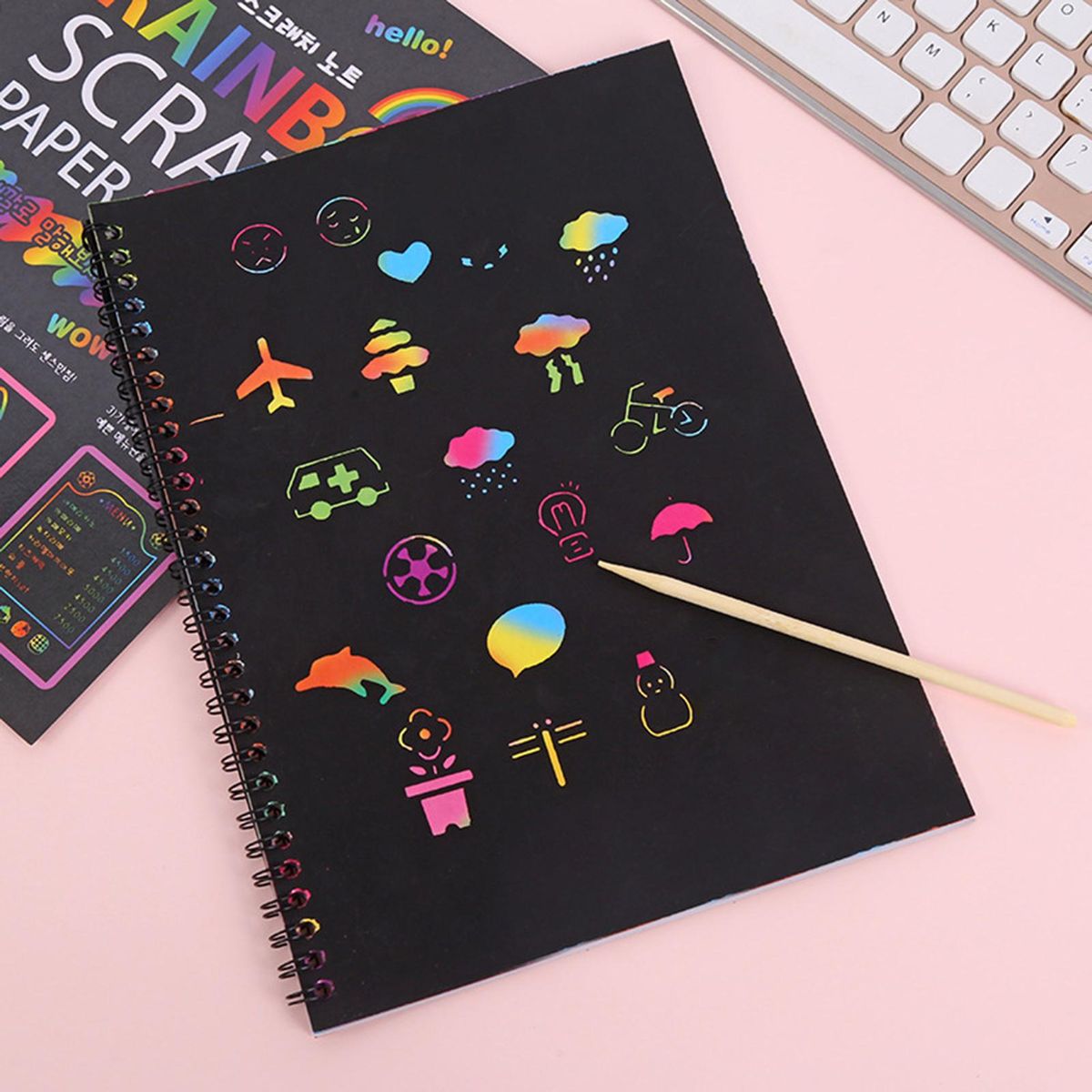 It is suitable for kids, children, gift, etc. It features with 10 sheets of scratch paper, 2 sheets of color covers.