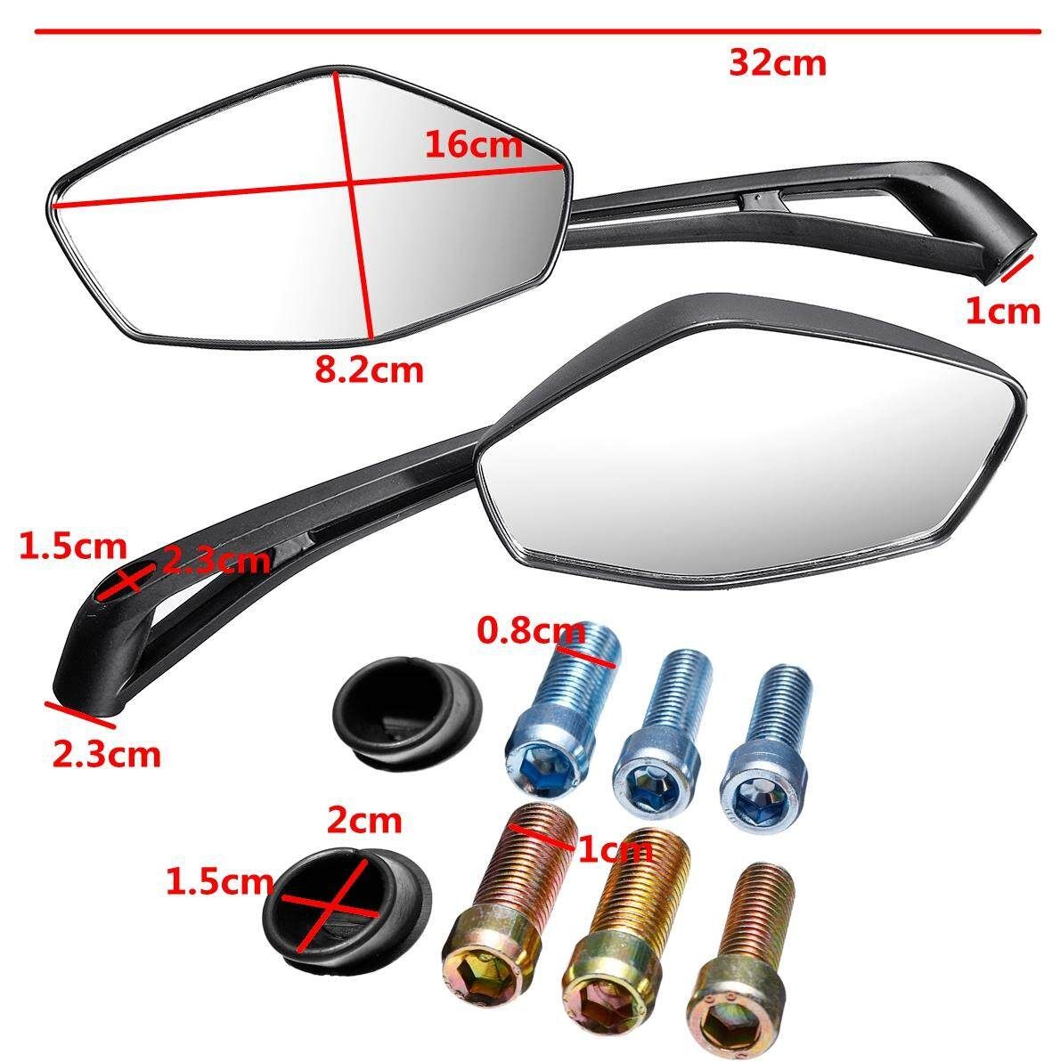 2 x motorcycle mirror 3 x 8mm Screw 3 x 10mm Screw 2 x Mounting Accessory