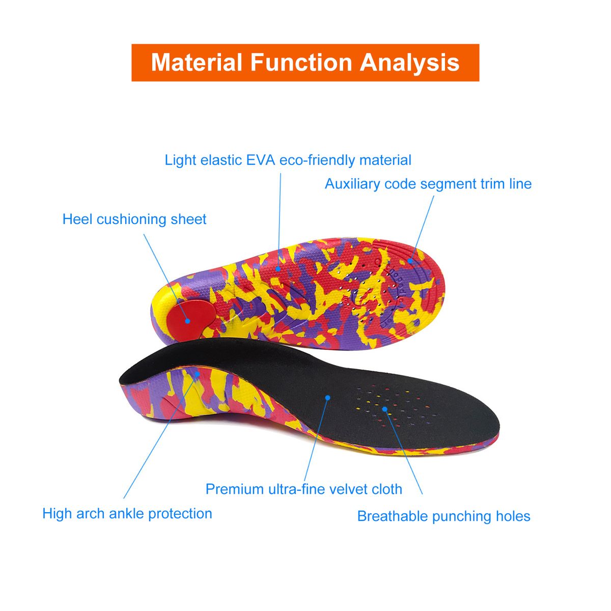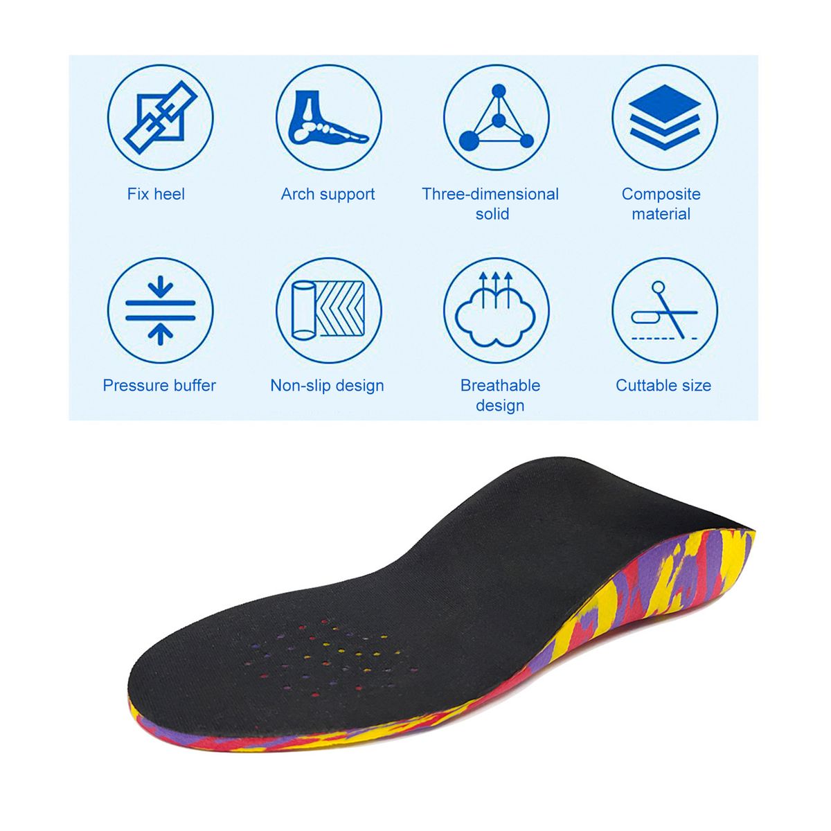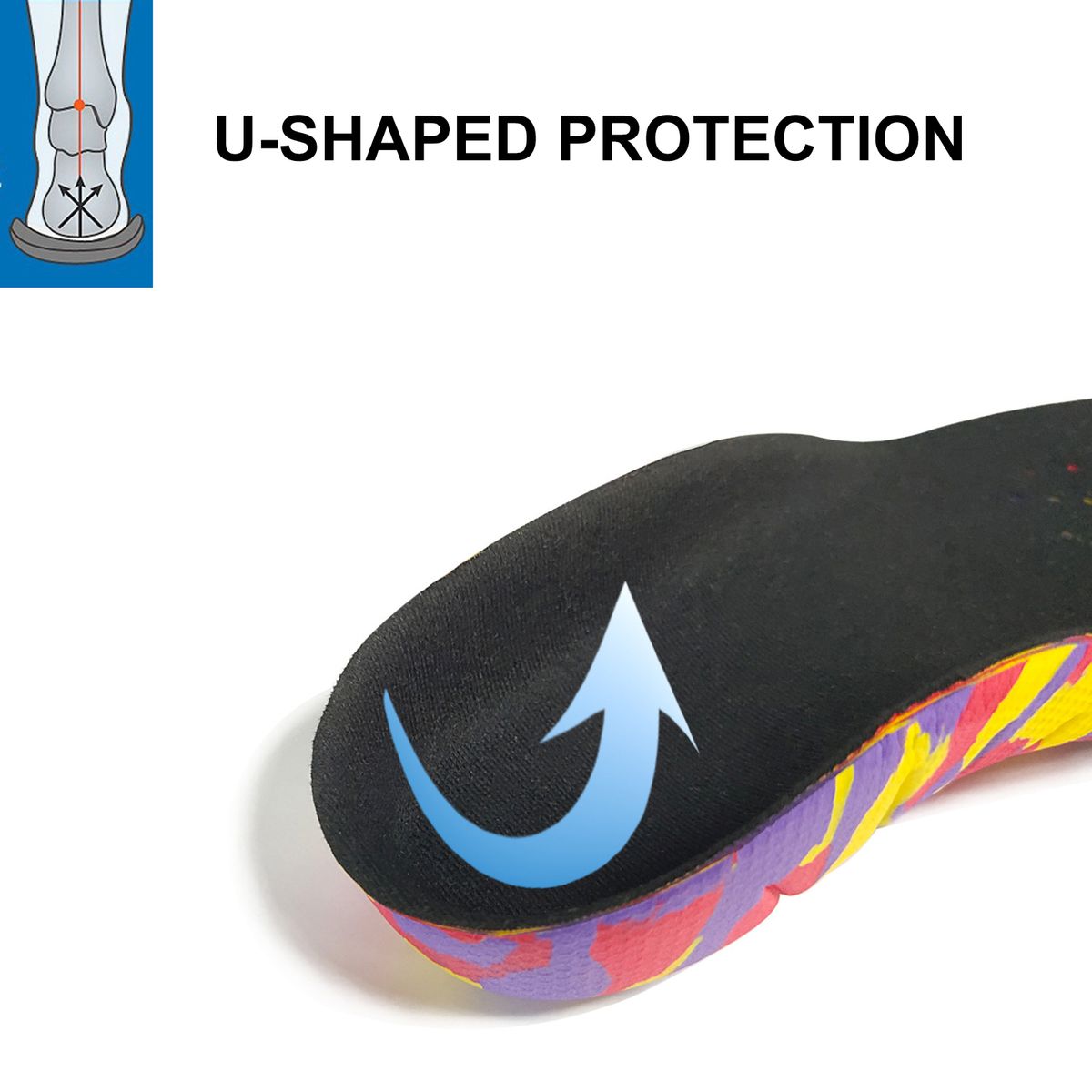 U-shaped heel design, to fix the neutral heel position, wrap around the heel to prevent the heel from slipping, better correcting.