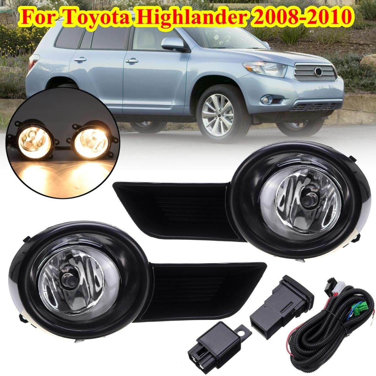 Pair Front Bumper Fog Light LampGrilles w/ Harness For Toyota Highlander 2008-2010