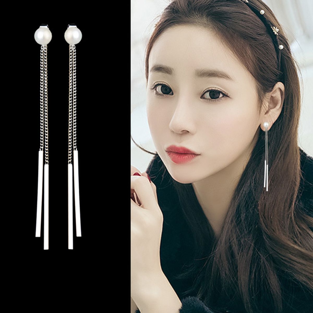 Rear-hanging double pillar pearl tassels, simple and graceful.