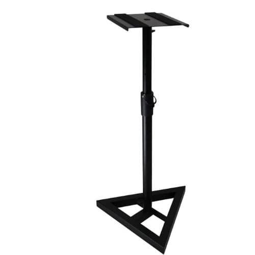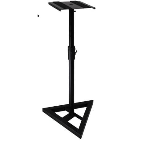 This stand is designed with home and project recording studios in mind. The height adjusts for listening sitting or standing and will lock in place with a security pin. Three adjustable leveling spikes on the bottom of the base keep this stand stable on any carpeted surface. Entire stand breaks down into three pieces for easy storage and travel.Finally, a worthy home for your studio monitors! Now you have a stable, solid stand for the perfect placement of your studio monitors. The On Stage stand is height-adjustable from 36 to 54 inches and has a 9.5"-square top platform with 1mm thick non-slip pad for speakers up to 100 lbs. Leveling spikes in the base let you compensate for an uneven floor surface and the whole base is remarkably stable. Other features include a safety pin in the vertical post and arc-welded, steel construction. The vast majority of today's studio monitors are near field monitors and near field monitors sound best when you listen from the sweet spot. These great On-Stage monitor stands let you pinpoint the placement of your speakers so you know you're hearing exactly what they're producing. Your mixes will sound better when you have your monitors in the optimum position.
