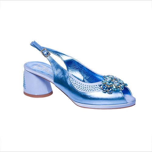 Palmeri are into production of exclusive women shoes and bags, is made from the finest quality high-end material; the shoe is made from metallic material and adorned with big color stone.