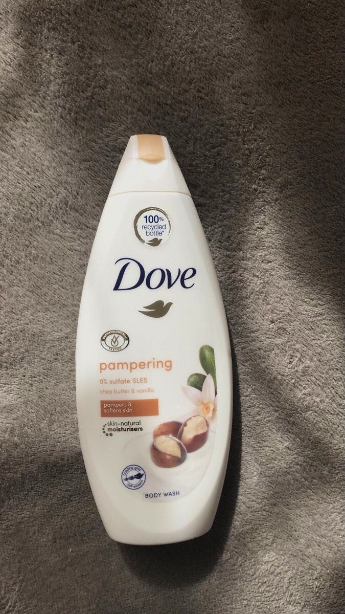 DescriptionDescriptionLooking for a gentle skin cleanser that pampers yourskin and senses? From the #1 dermatologist recommended bodywash brand, Dove Pampering Shea Butter & Vanilla Body Washnourishes your skin and senses with shea butter and warm vanillawhile leaving skin soft and smooth. This Shea Butter and vanillaScented body wash for dry skin is sulfate-free and paraben-freewith a mild, pH-balanced formula, making it a great body washfor dry skin unlike an ordinary bath soap or cleanser. This bodywash is made with millions of MicroMoisture droplets and leavesskin soft as silk for 24 hours. For best results, squeeze this deeplynourishing body wash into your hand or onto a shower pouf andwork it into a rich lather. Massage it over your skin, taking time toallow the nourishing shea butter and warm vanilla scent to awakenyour senses. Rinse off, revealing soft and smooth skin. Made withnaturally-derived cleansers, Dove Pampering Body Wash is gentle toskin's microbiome, its living protective layer. It creates a rich latherthat moisturizes and replenishes skin while also leaving it cleansed,smooth, and soft. Dove body wash is also effective at cleansinghands. This Dove sulfate-free body wash is from #1 dermatologistrecommended body wash brand and is microbiome-gentle.