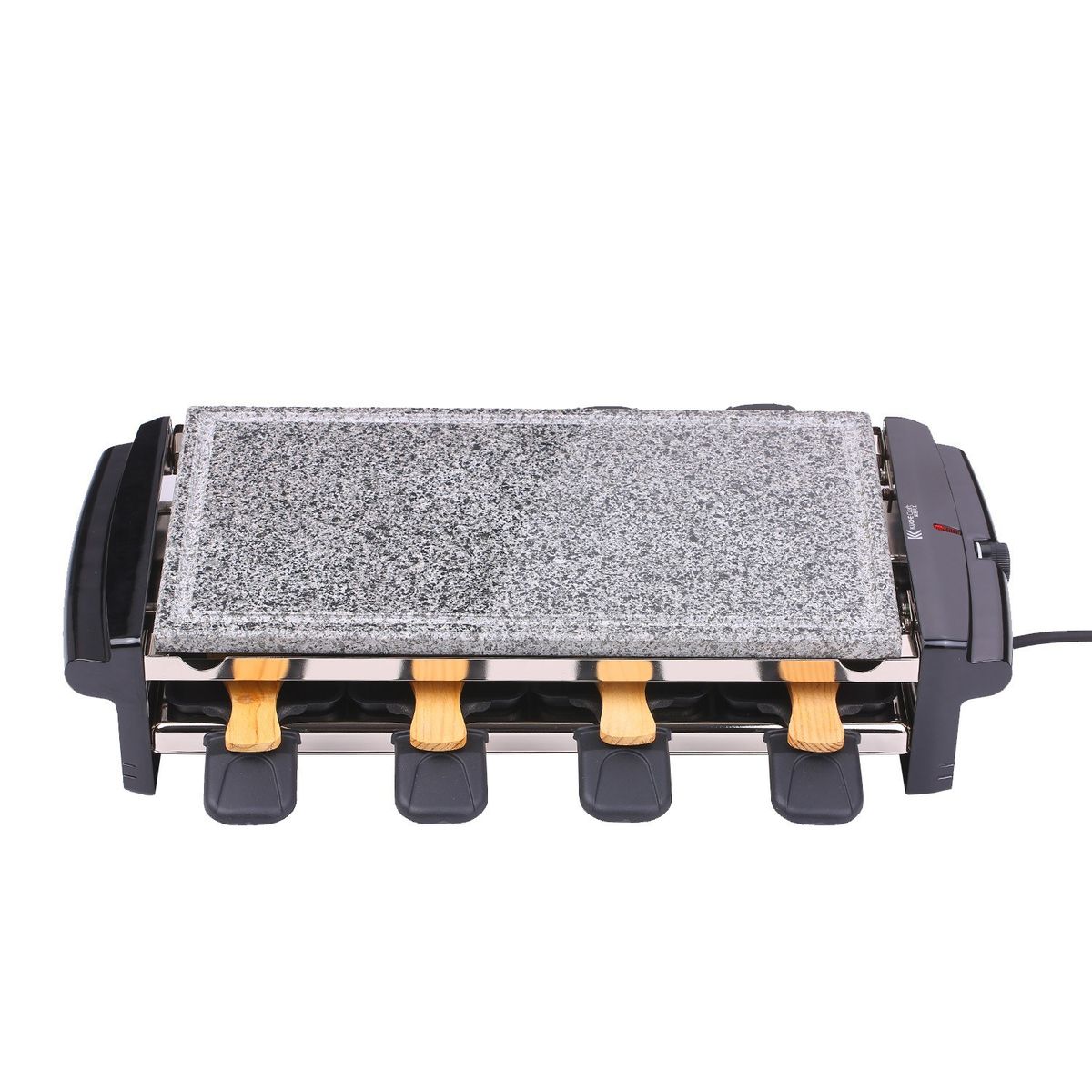 This is a multifunctional grill. It consists of a stone plate and 8 mini baking pans, allowing you to grill and bake at the same time, time efficient. The stone plate produces less smoke and delivers uniform heat conduction, making the meat juicy and healthier to eat. Perfect for making family gathering dinner and barbecue.
