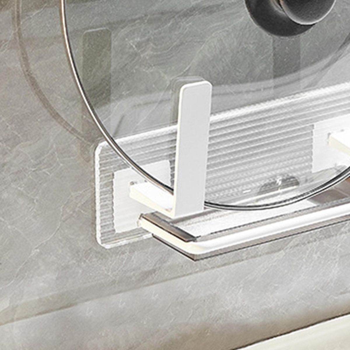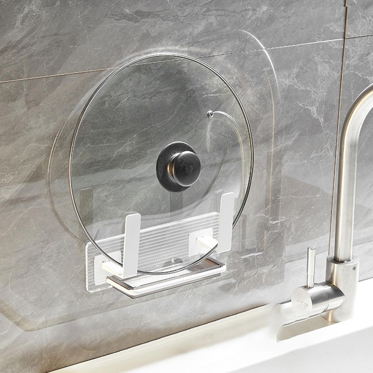 The wall-mounted pot lid holder can keep the pot cover stably hung on the wall, saving kitchen space. And you don't need to worry that it will damage the wall since it is punch-free.