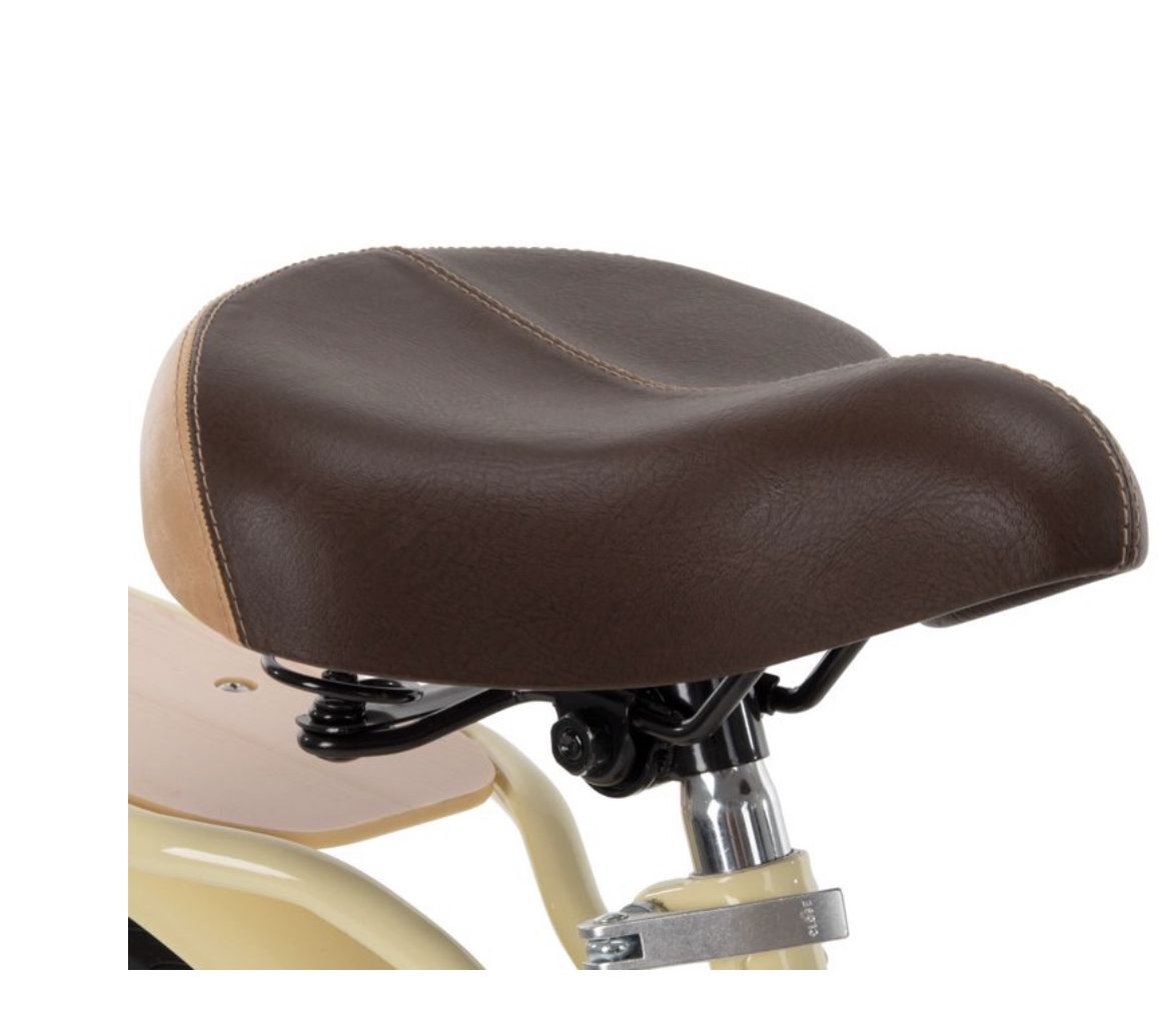 - Seat: Wide spring saddle is comfortably padded