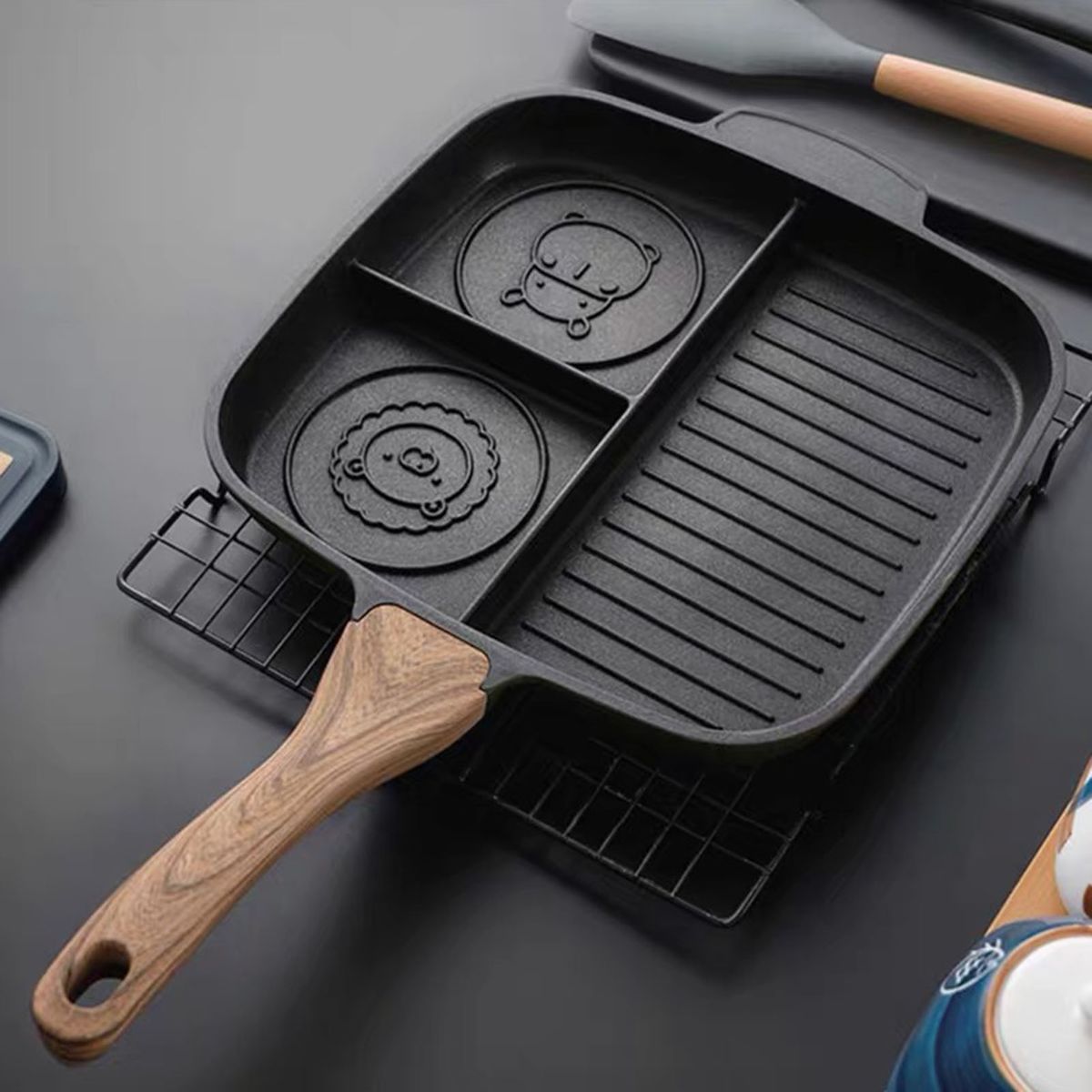 Pancake pan with 2 animal face designs, you can cook pancakes with cute animal face which will encourage kids to eat more.