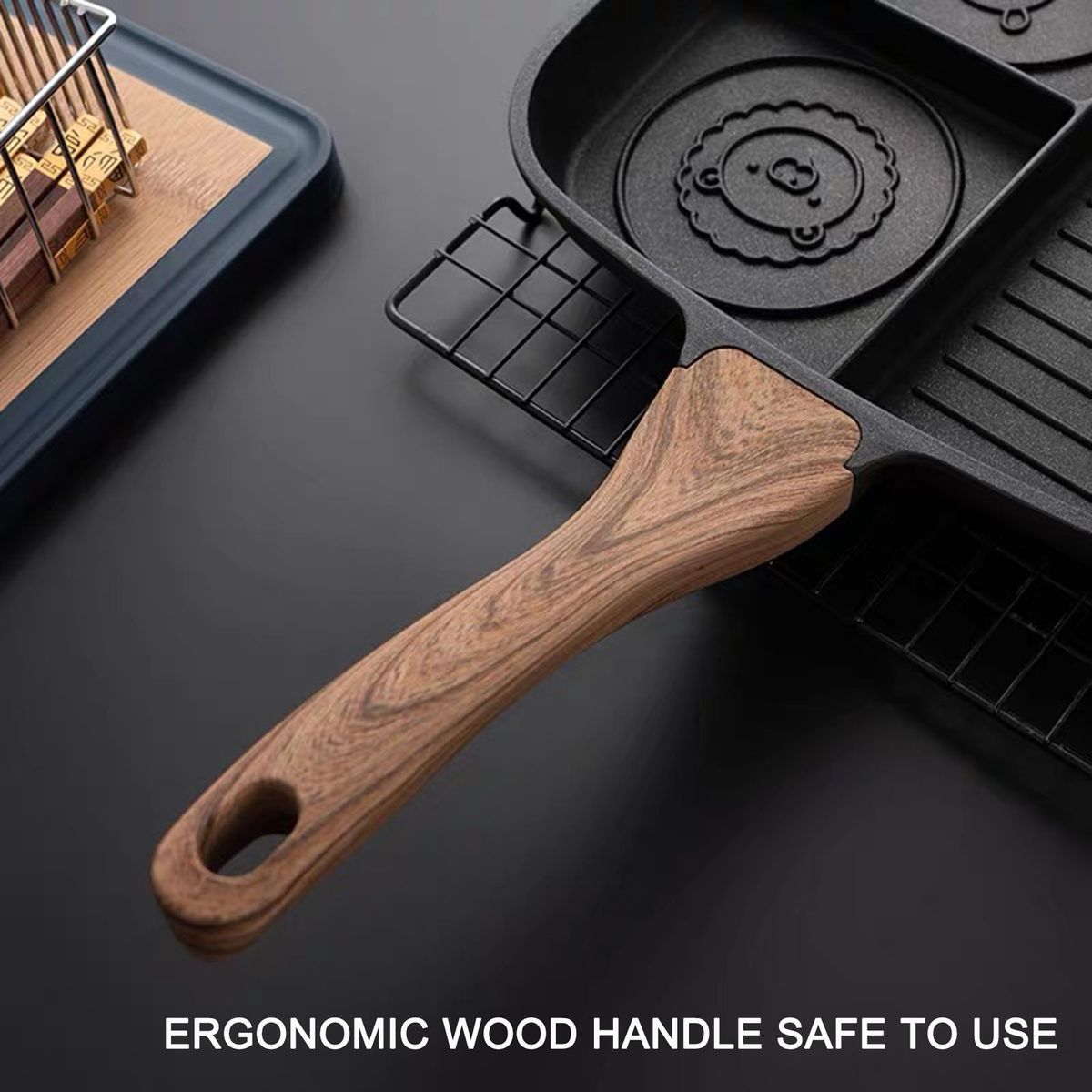 Ergonomic wood handle, comfortable to hold, do not get hurt from high temperature, safe to use.