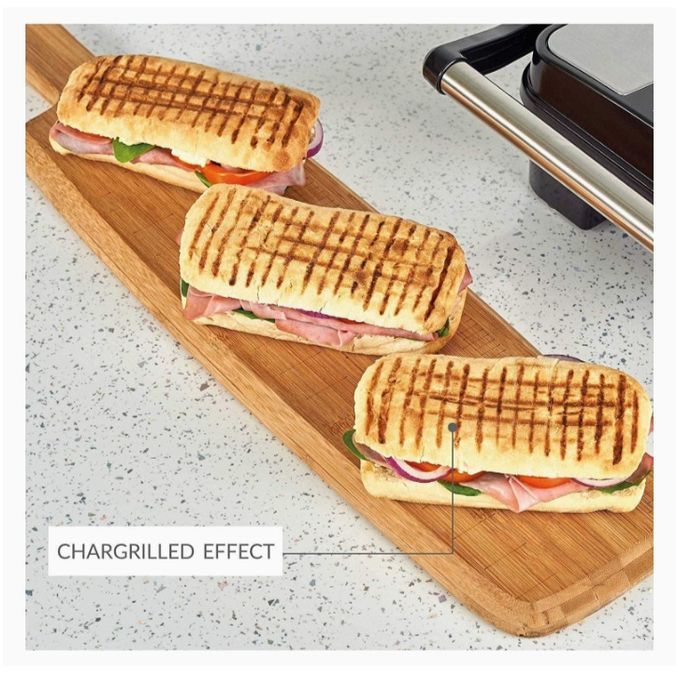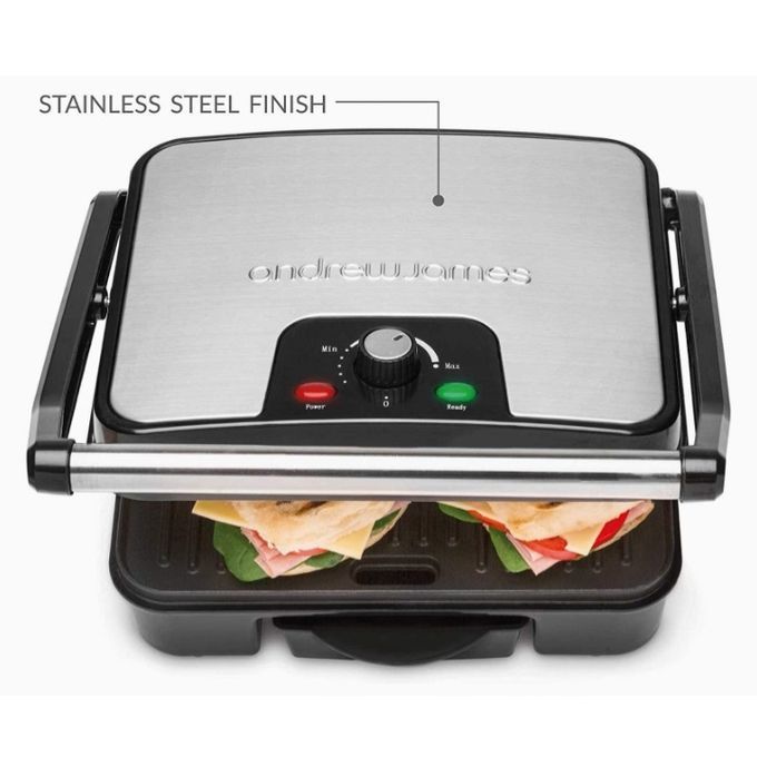 PANINI PRESS TOASTER AND GRILL MACHINE - The Andrew James Stainless Steel Panini Maker and Grill is ideal for making all sorts of delicious toastie, toasted paninis, grilled sandwiches, and can be used to grill other foods like burgers or chicken.