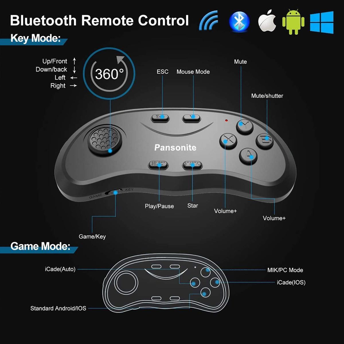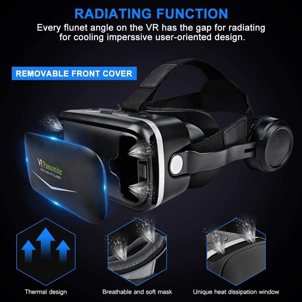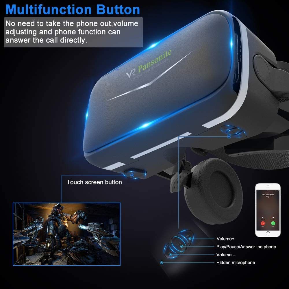 Pansonite VR Headset with Remote Control, 3D Glasses Virtual Reality Headset for VR Games & 3D Movies, Eye Care System for iPhone and Android Smartphones