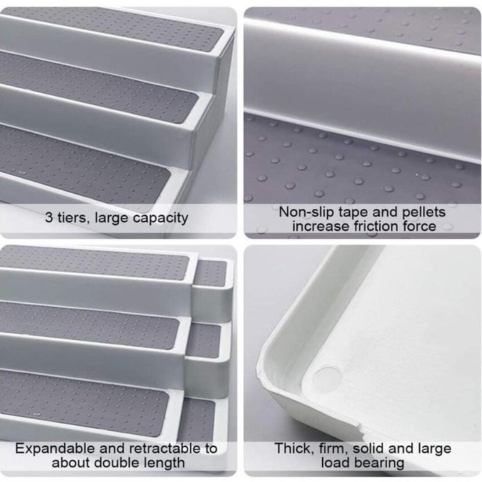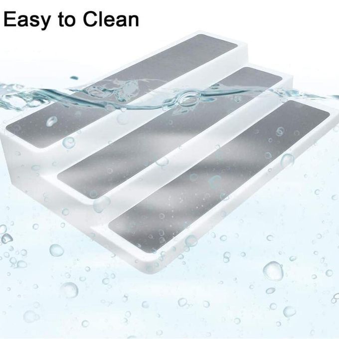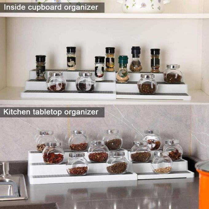 For added convenience, each tier is furnished with a non-skid surface to keep your jars and bottles right wear you placed them to ensure your items won't slide off the rack and break in the process.