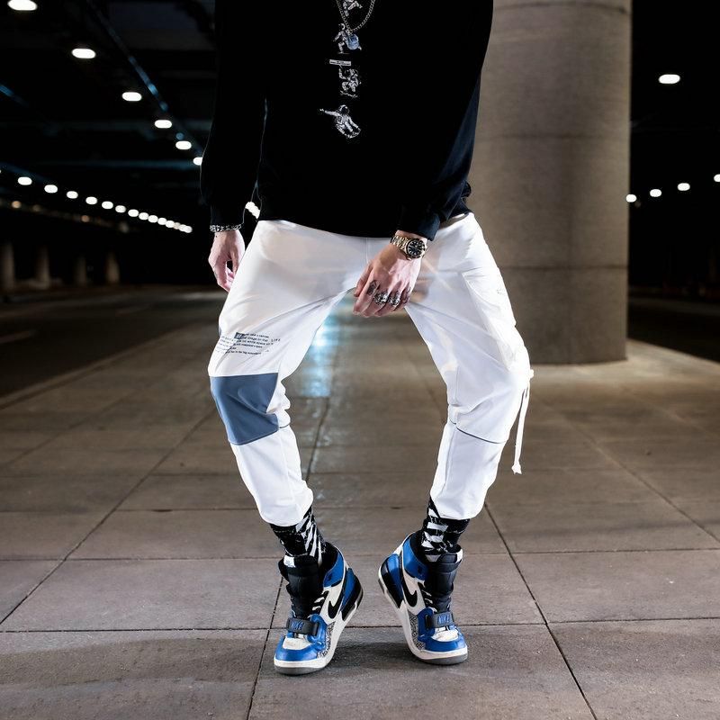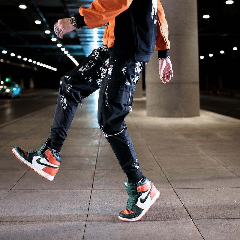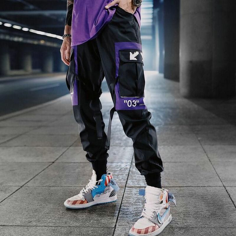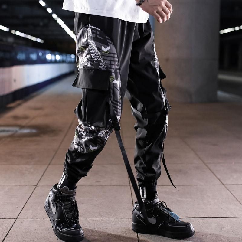 1X Pantalones Cargo con cintas de Hip Hop para hombre ropa de calle pantalon de cintura elastica pantalones de chandal con cintas 2021
