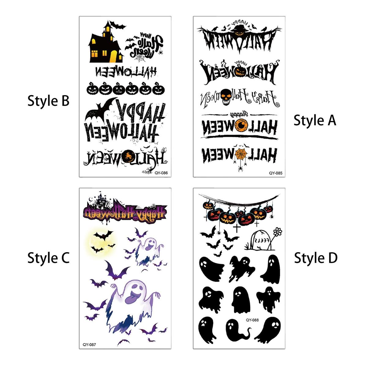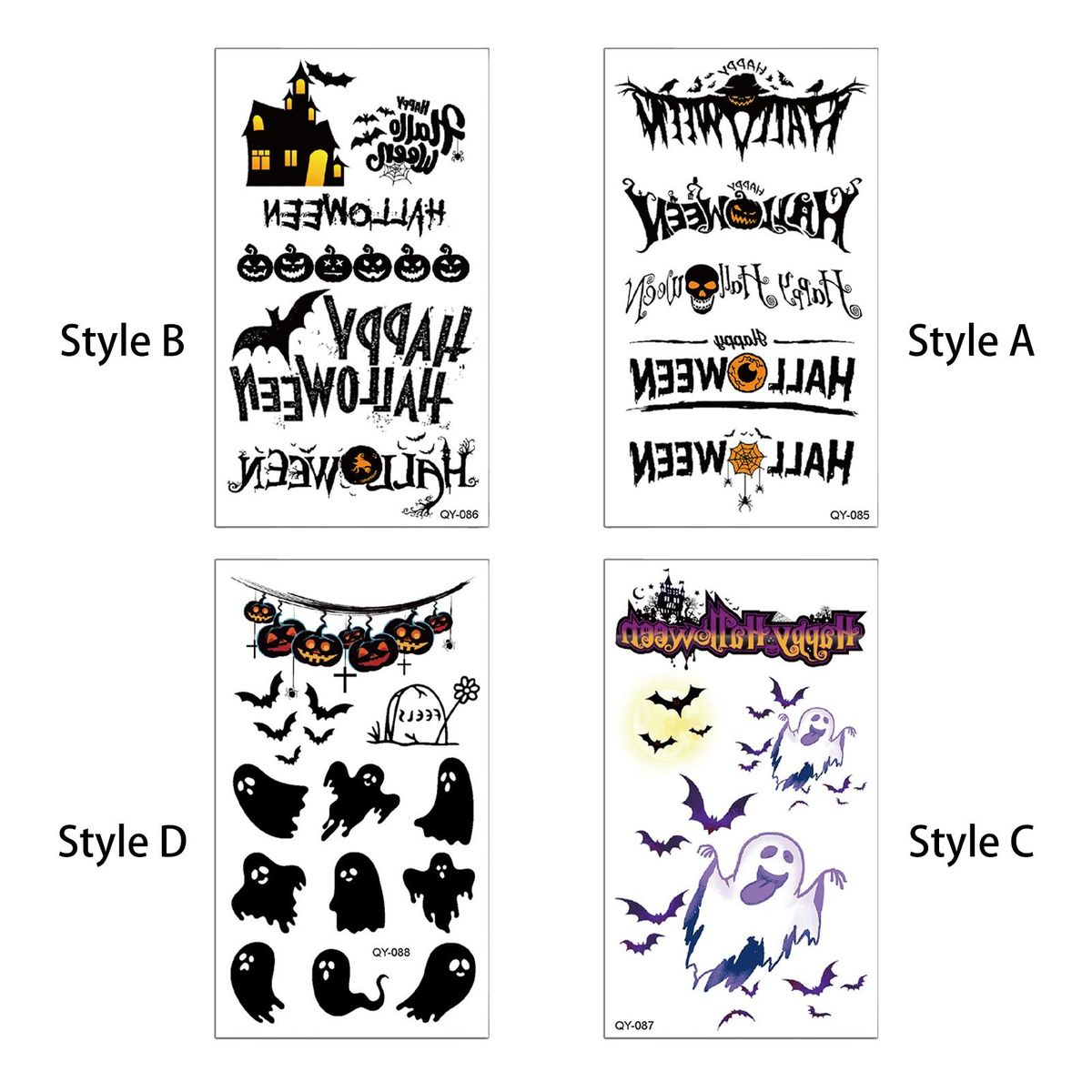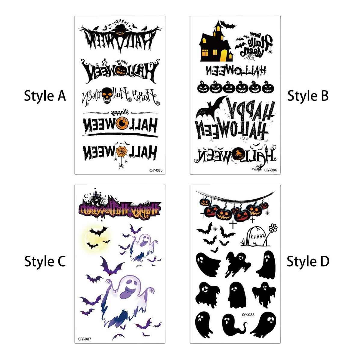 【How to Use】: Cut down the selected pattern of the halloween face paperback, tear off the on the surface, stick it on the skin, gently with a wet towel, wait for 30-50S, let it dry naturally, and then tear it off.