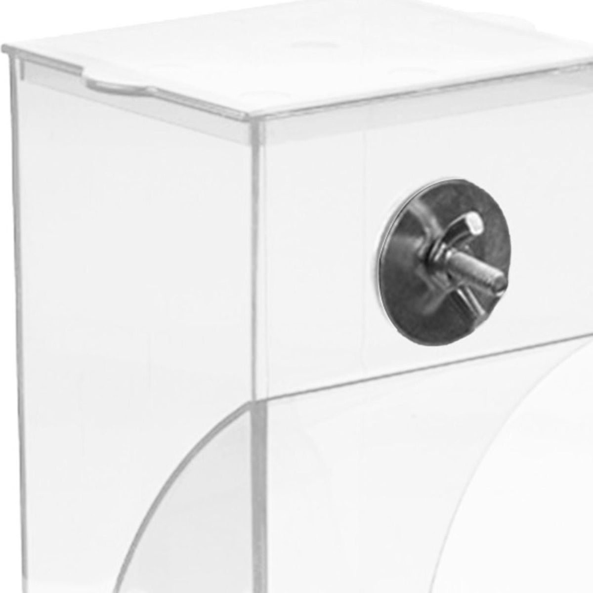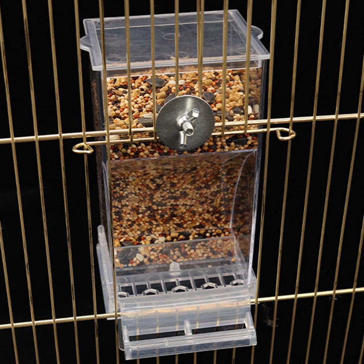 Made of plastic, durable, allows you to see birds from any angle without your view being obstructed.Pull-out drawer design, easy to feed and clean. The Station Pole design prevents pets from digging food.The baffle can be adjusted according to demands. Screw fixed, easy to install, can be hung outside or inside.Leakproof, anti-spatter and splashproof, no mess feeder, all seeds are kept in the container.Perfect for parakeet, cockatiel, budgerigar, finch, budgie, parrots, love birds, etc.