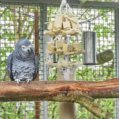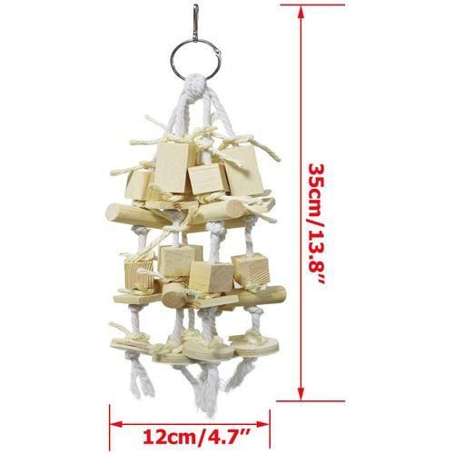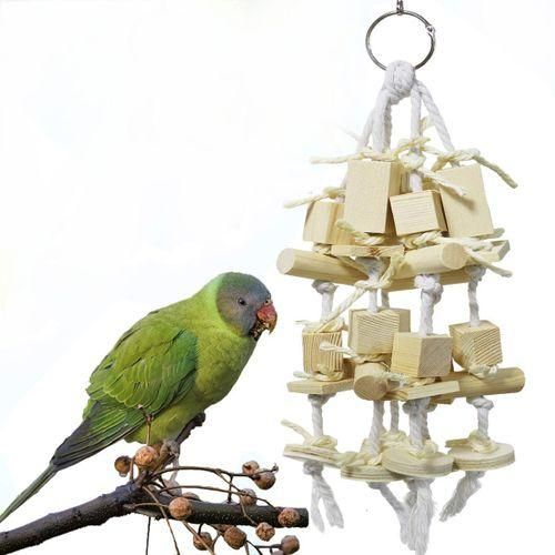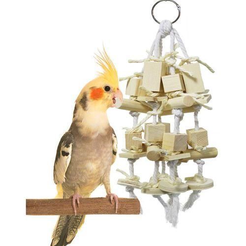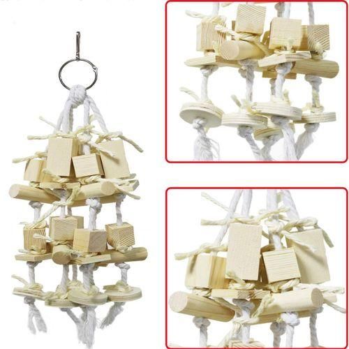 The parrot chew toy contains wooden blocks and other various shaped accessories to attract your parrot bite and help your feathered friends know and condition their water.