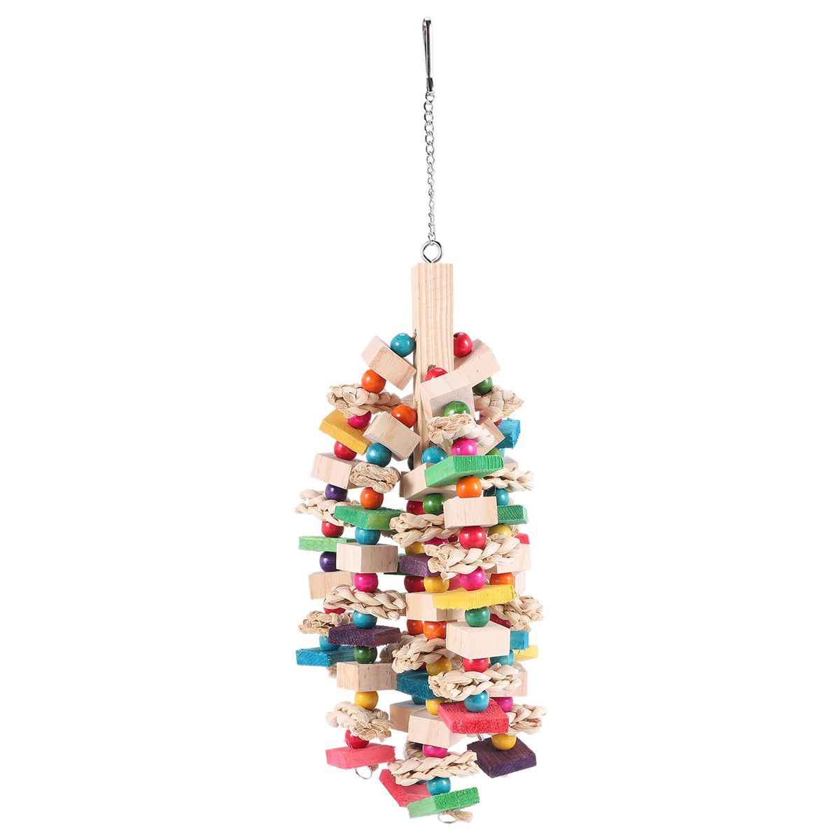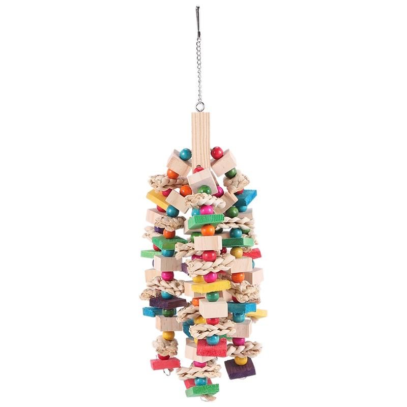 PARROT TOY The bird toy provides activity to keep your feather stable and happy and There are several multi-colored blocks in this single toy to entice your bird These blocks are arranged in multiple layers to climb and also love to untie cotton rope knots which satiates their natural to chew