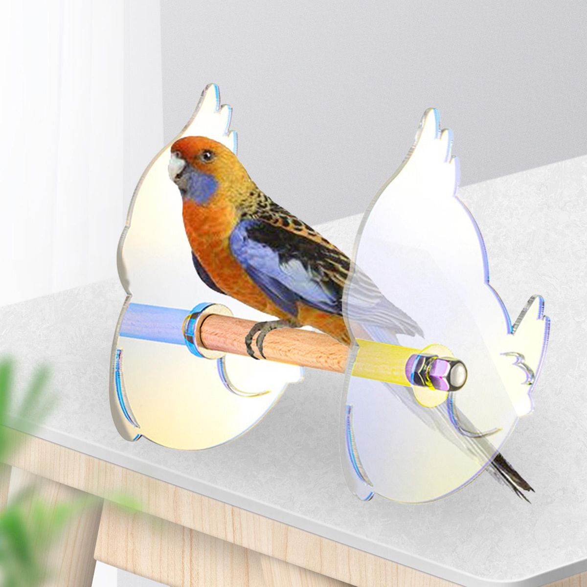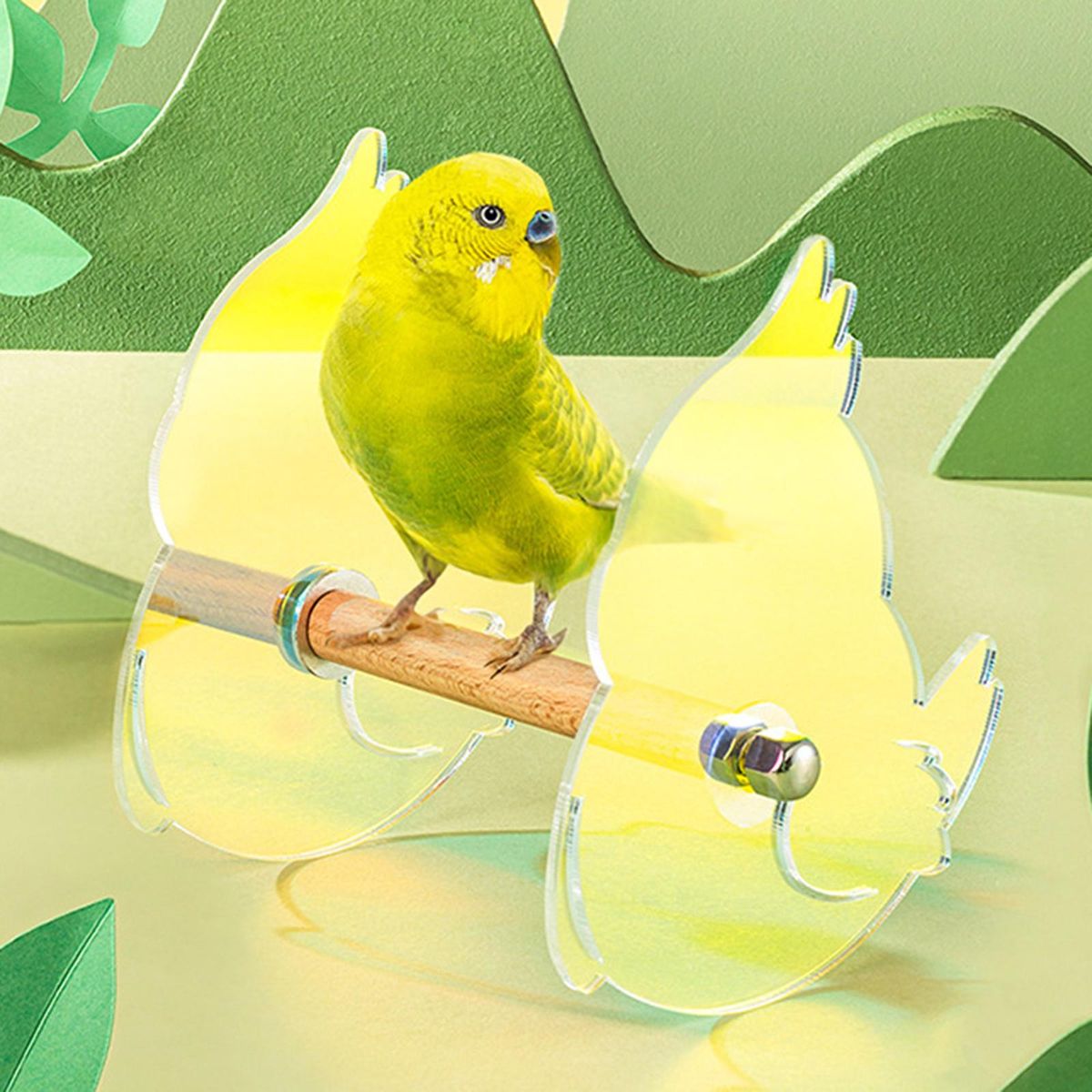 Materials: The parrot swing stand bar is made of wood and acrylic, durable.