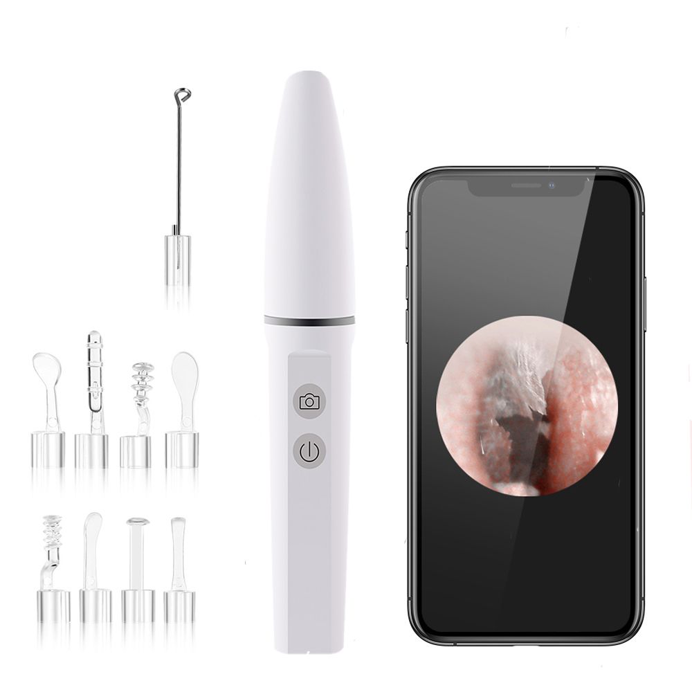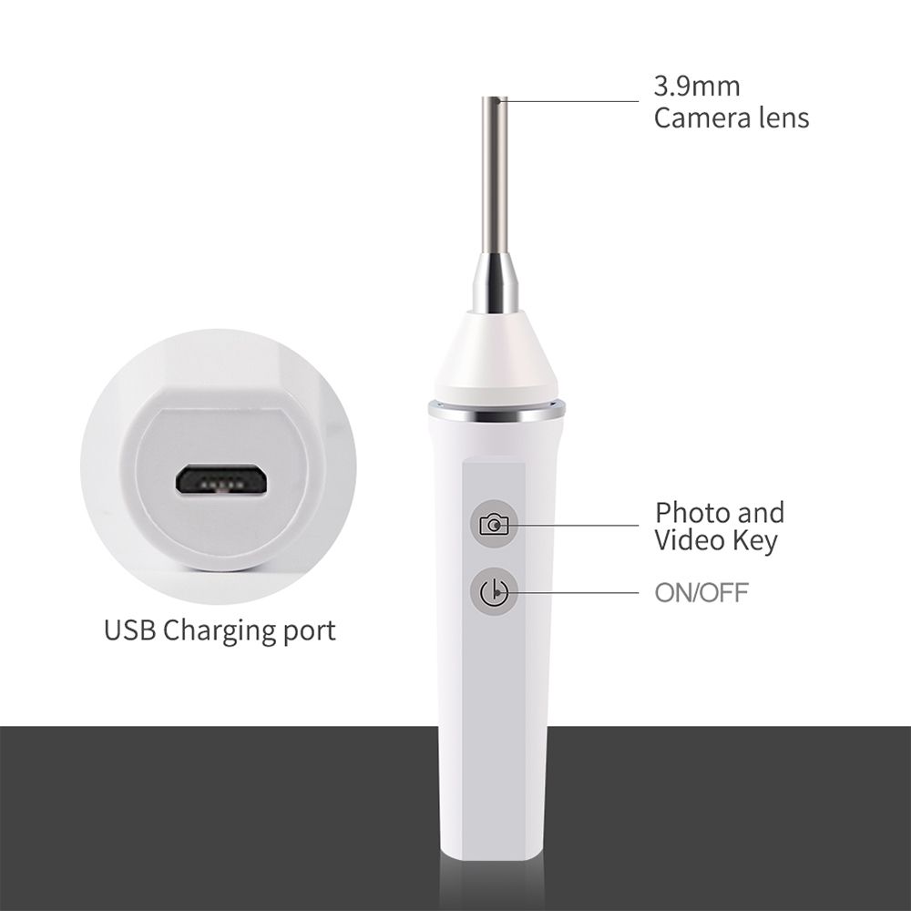 Pastsky HD Wireless Intelligent WiFi Visual Ear Spoon Pick Endoscope Canal Cleaning Vacuum Wax Removal 6 LEDS 3.9mm Android iOSFeatures:1.This wireless intelligent WiFi visual ear spoon is equipped with a 2 million pixel high-definition camera and 6 LED lights, which can provide clear images in any situation, helping you to more easily check the ear canal and remove earwax.2.Our product supports taking pictures and videos, and you can save the pictures and videos on your mobile phone and send them to the doctor. 3.The six-axis AR directional spiral instrument can make the body rotate while keeping the angle unchanged, making ear picking more accurate.4.The fast WIFI chip and independent APP have strong signals, can be compatible with a variety of devices, and have a wide range of applications.5.Our visual ear pick can be used not only for ear canal inspection, but also for oral cavity inspection, skin inspection and nasal cavity inspection.6.Designed specifically for family health, with the concept of safety first, our smart ear pick is equipped with multiple ear pick accessories to meet different needs, suitable for the elderly, adults and children.* Support mobile phone: Android 4.4 or above/iOS 6.3 or aboveSpecifications:Material: PC plastic + aluminum alloy Color: black/white/pinkSize: 166*111*38mmWeight: 200gLens diameter: 3.9mmPixel: 200wBattery capacity: 400 mAh Gravity sensor: six-axis AR positioningPacking List:1* Smart WiFi Visual Ear Spoon1* Plastic Ear Pick Accessories1* USB Charging Cable1* User Manual