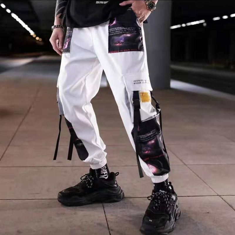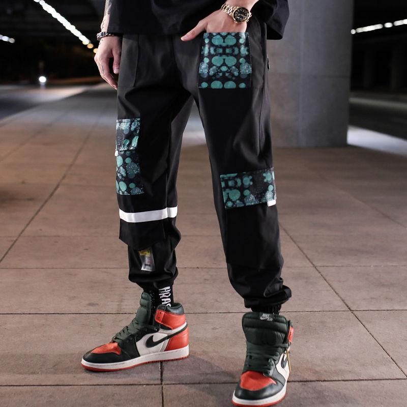 1X Bolsillo de bloque Patchwork Cargo Joggers hombres estampado de letras de estilo Hip Hop 2020 nuevos pantalones Harem hombres Casual Ribbons pantalones de chandal