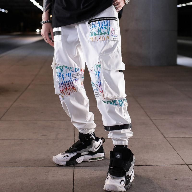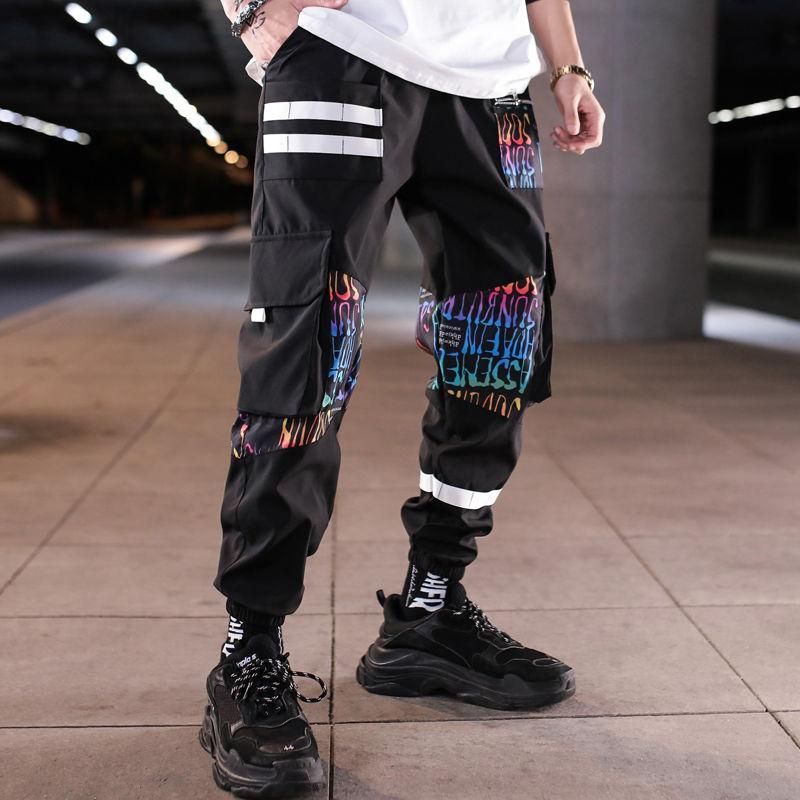 Bolsillo de bloque Patchwork Cargo Joggers hombres estampado de letras de estilo Hip Hop 2020 nuevos pantalones Harem hombres Casual Ribbons pantalones de chandal