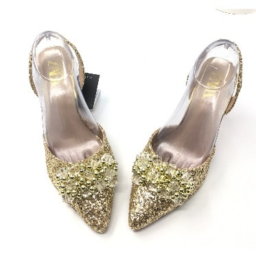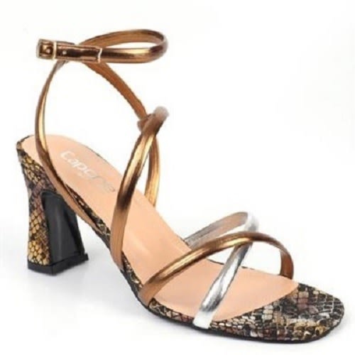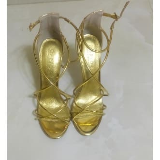 Step out in this beautiful well crafted gold sandal. It is made of premium quality leather. It is fitted to the feet with lovely straps with buckles at the ankle. It is a open toe sandal and can be worn to any occasion or outing.