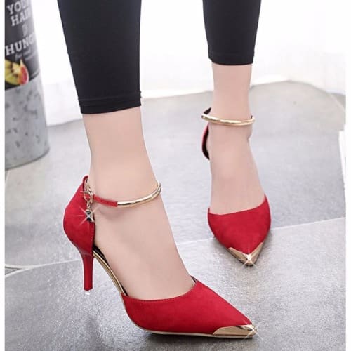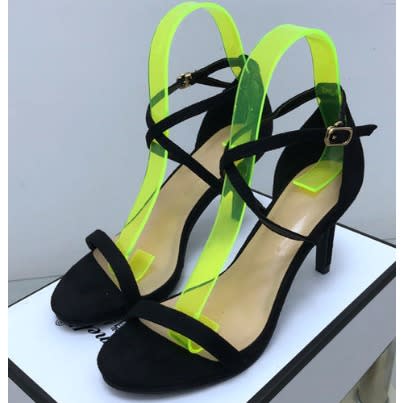 beautiful orange colored iong strap block heel shoe suitable for all events. so comfortable, easy to wear and maintain. cso comforatble that it can be worn all day, comes in a clear dust bag for storag