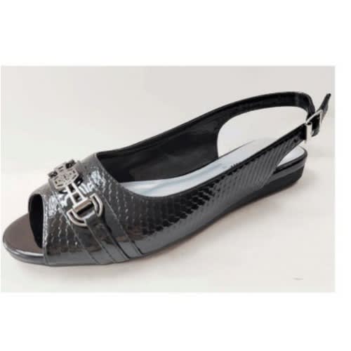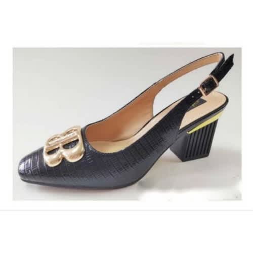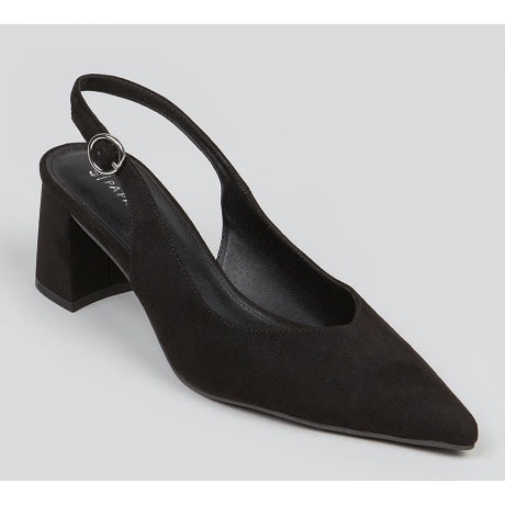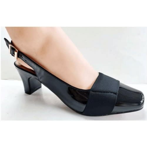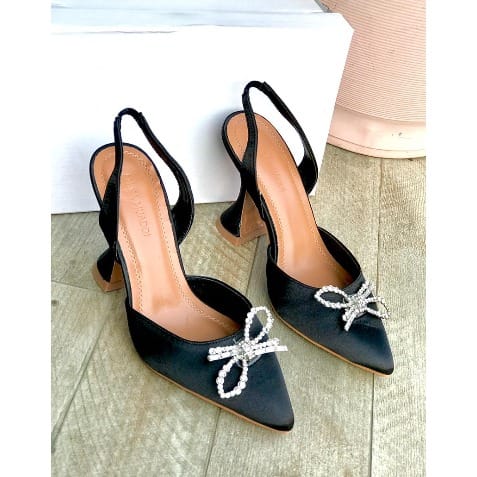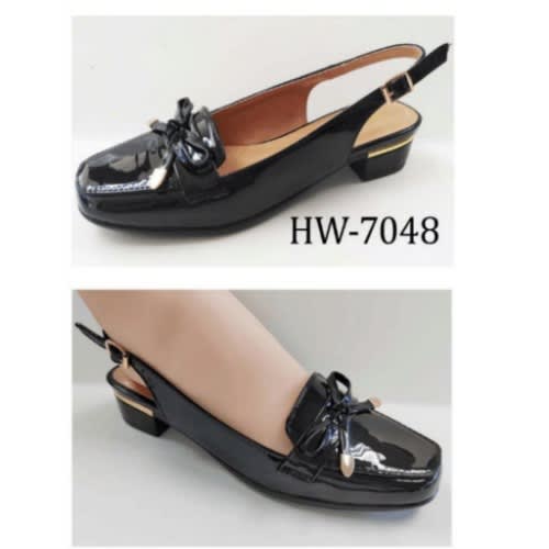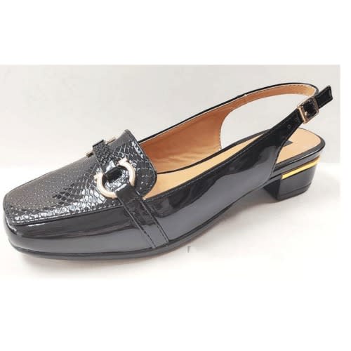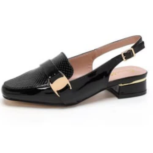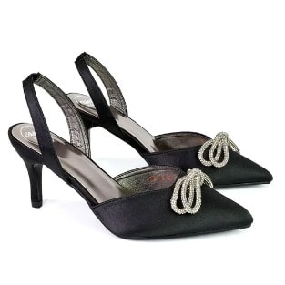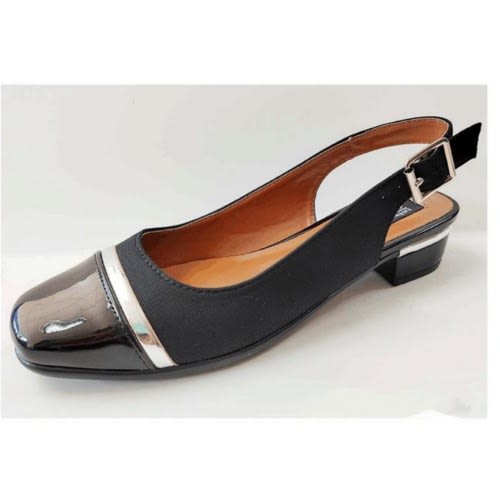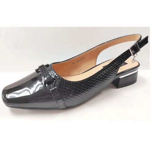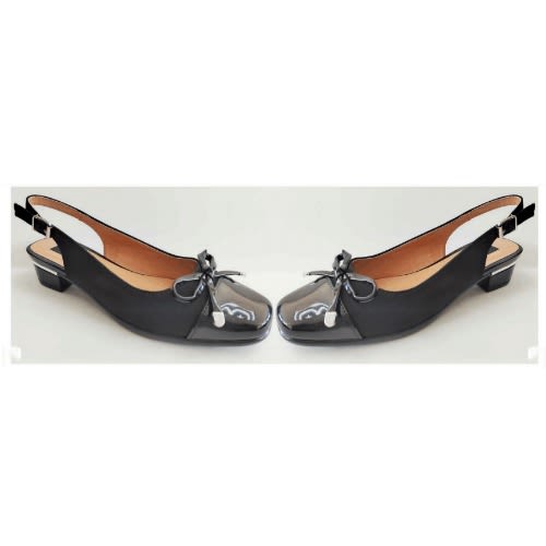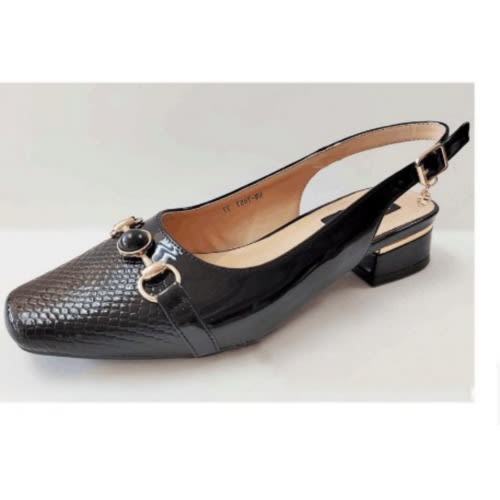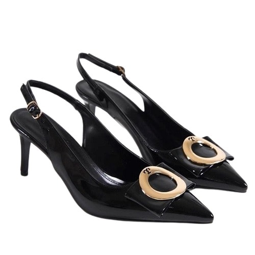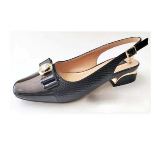 Ladies Pointed Toe Round Metal Detail Bow Slingback Patent Shoes- Black