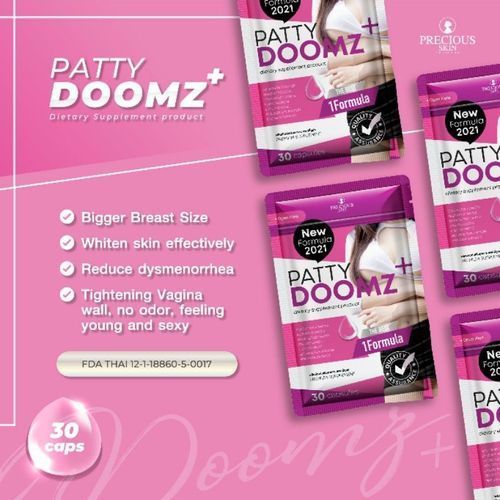 Patty Doomz Plus+ formerly known as Pretty Doomz Capsule is a 3 in one miracle worker pills that is breast enhancing, skin whitening and claims to bring back virginity by tightening the most female region. Formulated with Phytoestrogen, Collagen, Vitamin C, Berry Mix, Vitamin E, Cranberry Extract, Ginseng & Ginkgo Biloba Extract to enlarge breast size, brighten skin and tighten and reduce unpleasant smell around the vagina.Patty doomz is an all-natural herbal dietary supplement and does not contain any dangerous steroids, fillers and/or chemical ingredients and has not been shown to have negative side effects on its users. directions: take 1 -2 capsules before bedtime with lukewarm water. it should be taken continuously until reached satisfactory results.