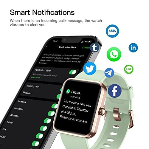 - & : After binding with the APP, when a messages/alls omes in, the fitness wath will vibrate to alert you, and the sreen displays the message ontent/aller ID, you will not miss any important information and you an also hang up nuisane alls; It require smartphones with Android 6.0 or above/iOS 12.0 or above and Bluetooth 5.0 or later. (Please Note: only support reeiving alls and messages.)