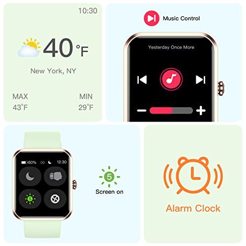 - : 1.4 inhes TFT-LCD Color Touh Sreen + 5 brightness adjustable, giving you a better visual experiene and it stay lear even in the sun; you an also personalize your smartwath and reate your own stylish smart wath. In addition, it also inludes weather foreast, sedentary reminder, alarm lok, musi ontrol, stopwath and more.