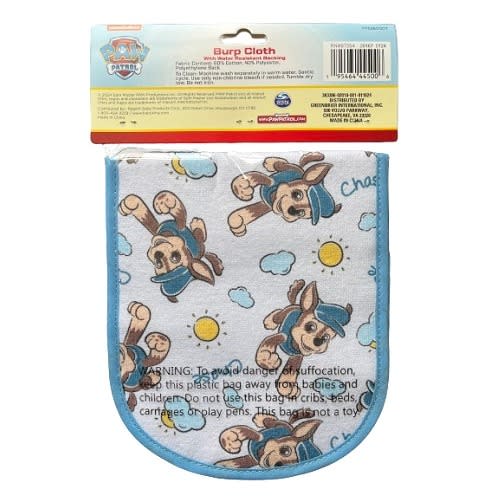 Paw Patrol Chase Baby Burp Cloth With Water Resistant Back