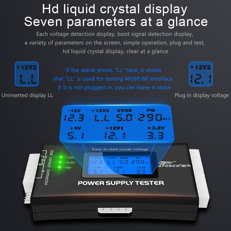 Test voltage:3.3V, -12V, 12V1, 12V2 + 5 VSB, + 5V, and PG time