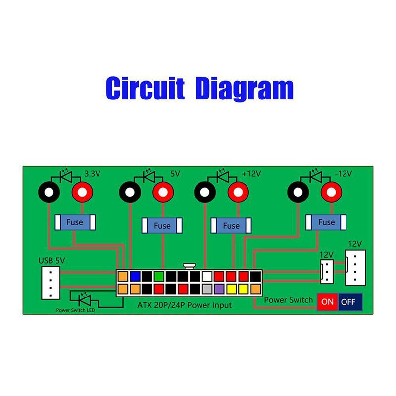 4. On board standard 24 pin ATX port, power indicator and power switch are best for easy control of DIY low voltage power supply for developing physical computing projects (embedded systems).
