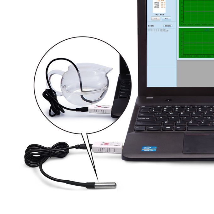 TEMPer1F is a measurement device using USB port to connect to a computer. It has an outer sensor with waterproof functions.