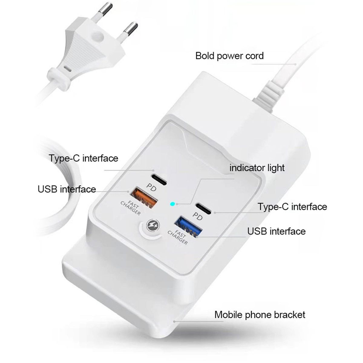 2. The all-in-one charging station includes 4 ports, 2 USB-A ports and 2 USB-C/Type-C PD ports for fast charging of multiple devices.