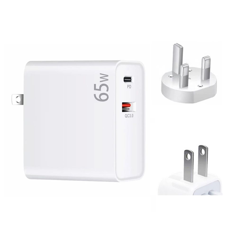 PD-65W USB-C / Type-C + QC3. 0 USB Laptop Charging Adapter + 2m USB-C / Type-C to USB-C / Type-C Data Cable Set, UK Plug / US Plug(White)