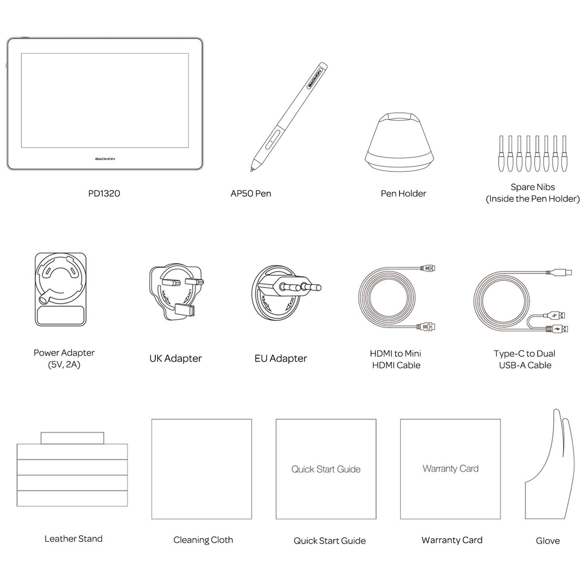 PD1320 drawing tablet is compatible with Windows 7 OS or above/, Mac OS 10.12 or above/support Android (Android device support USB3.1 and TNT mode) system, smoothly compatible with major mainstream painting and design software.