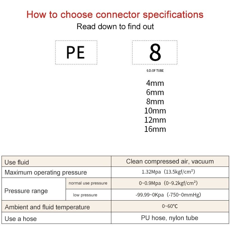 5. Applicable hose: PU tube, nylon tube