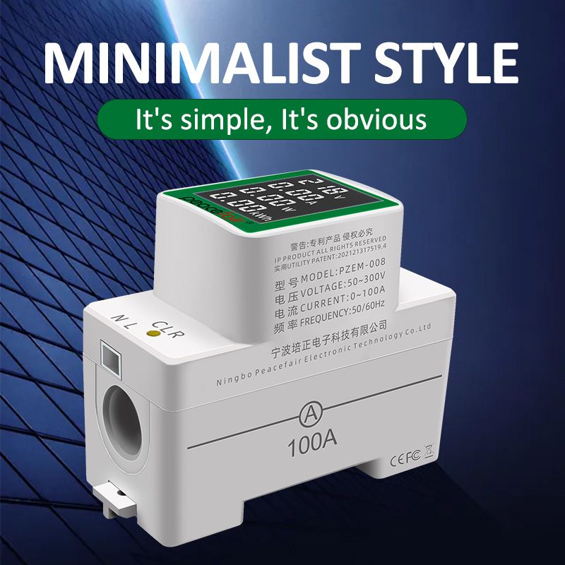 Peacefair AC Amp Panel Energy Meter Single Phase Power Monitor Current Voltage Digital Power Consumption Din Rail Meter For Home