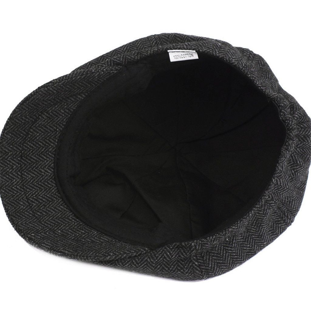 Black Grey Herringbone Newsboy Baker Boy Tweed Flat Cap Mens Gatsby Hat