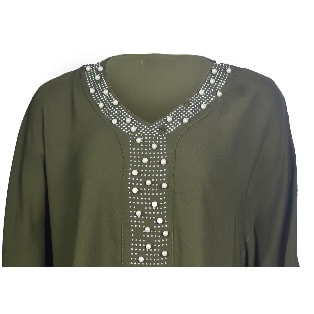 Buy Pearl And Stud Embellished Kaftan Inspired Blouse - Olive Green in Nigeria