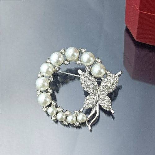 Buy Pearl Butterfly Silver Brooch Pin For Women - 3.8 x 4cm in Nigeria