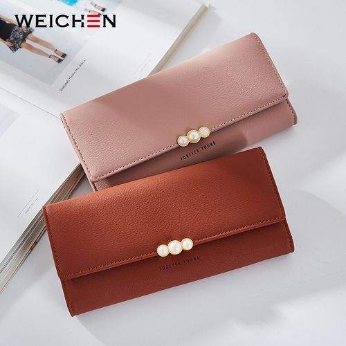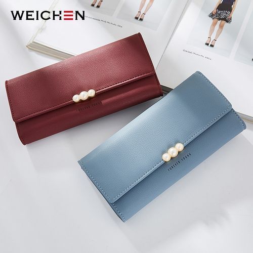 1X Pearl Element Women Wallets Credit Card Purse Cell Phone Pocket Ladies Clutch Bag Red Soft Leather Long Female Wallet Carteira